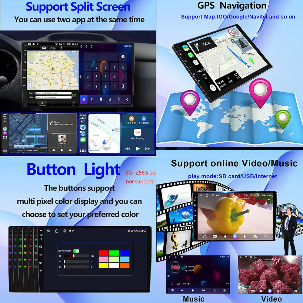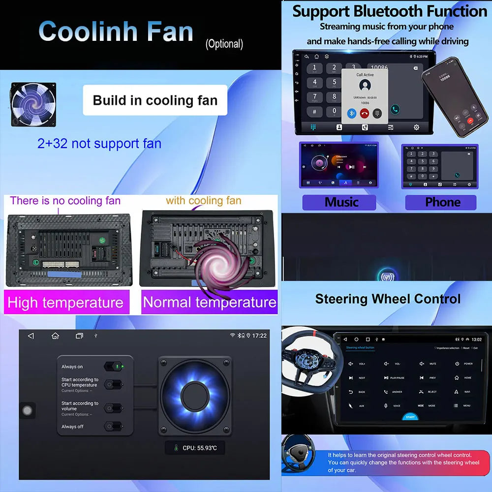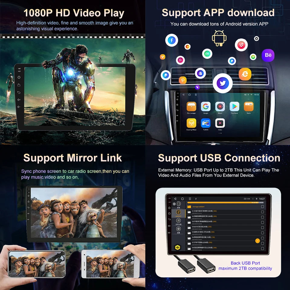 Profitez de le dernier Autoradio Android compatible CarPlay et Android Auto 14 avec écran tactile HD fluide et réactif HD, Bluetooth et compatibilité CarPlay/Android Auto.